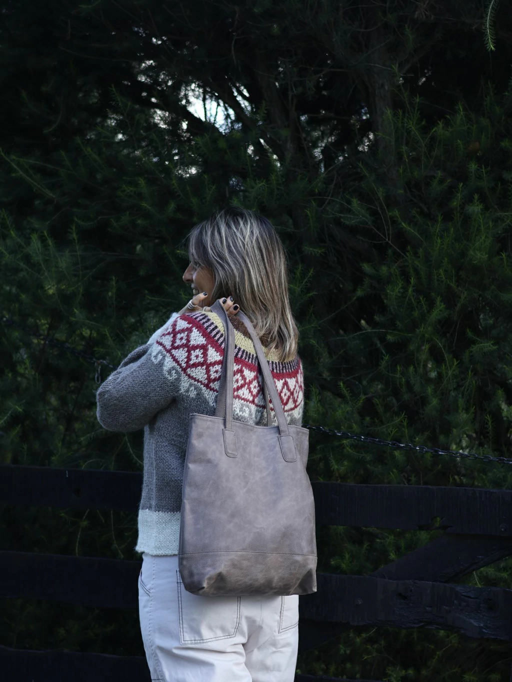 Bolso de cuero, sin forro, tiene un bolsillo interno con cierre de 18 x 22, correa de hombro, cierra con un imán.