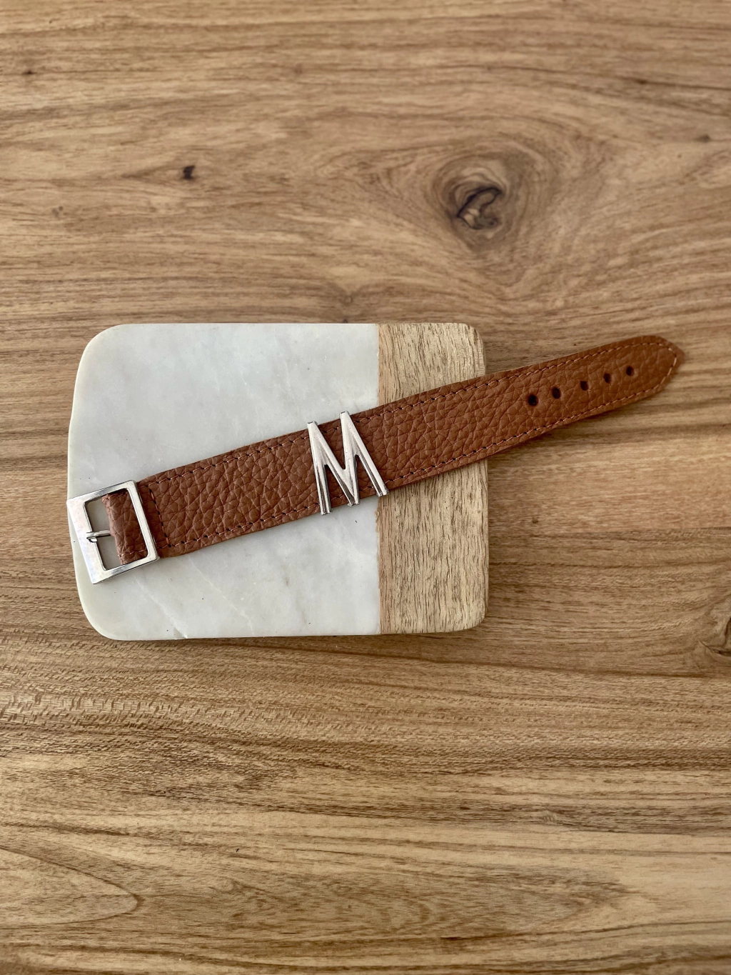PULSERA DE CUERO CON INICIAL DE 3 CM DE ANCHO